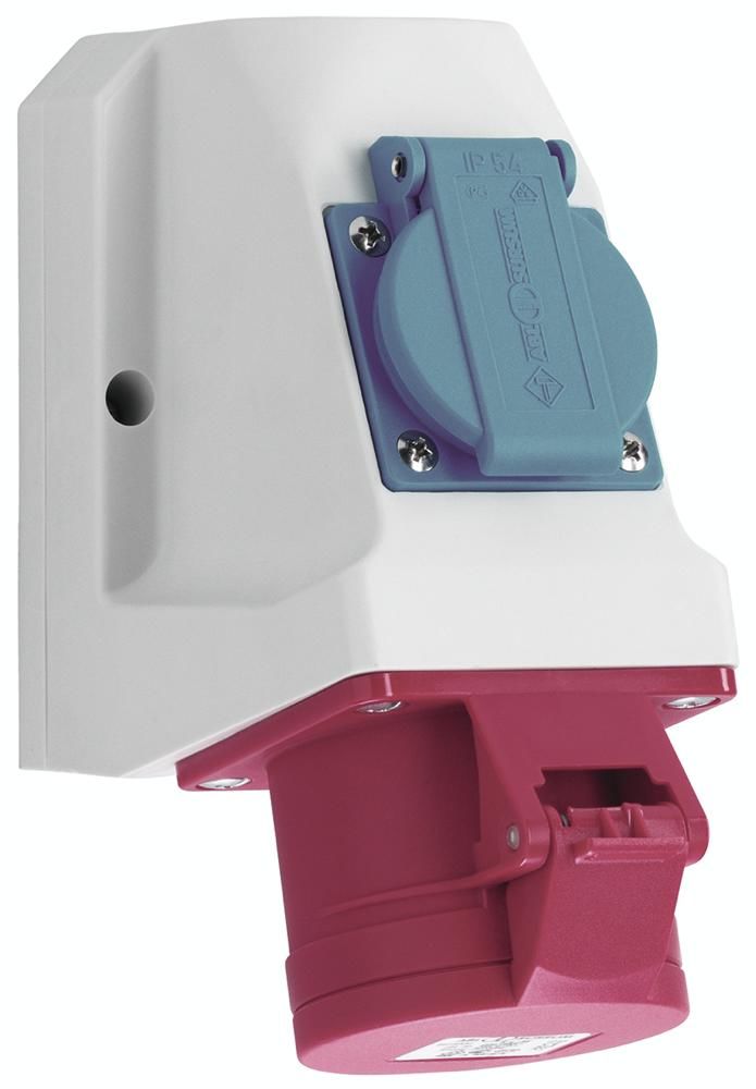 Abl Sursum D51S331 ABL CEE Kombi-Wandsteckdose IP44 16A 5p 400V 6h rot verdrahtet