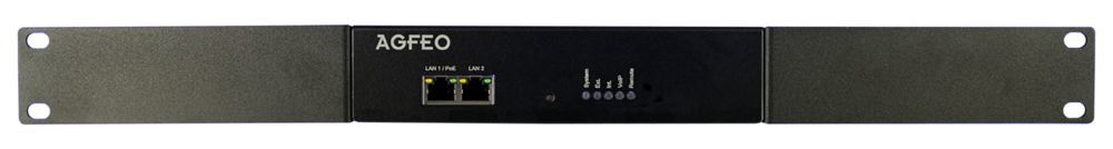 Full-IP System im 48,3 cm ( 19 Zoll )-Gehäuse (schwarz, 1HE) mit bis zu 30 VoIP-Kanälen (6 im Grundausbau, 24 weitere via kostenpfl. opt. Lizenz) und bis zu 40 Benutzern (10 im Grundausbau, 30 weitere via kostenpfl. opt. Lizenz). Unterschiedliche Status via LED Anzeige. LAN- Anschluss für SIP intern und SIP extern. Individualisierbare MoH, Aktivierung 2. Netzwerk-Schnittstelle über optional erhältliche ETH Plus Lizenz, integr. Voiceboxsystem inkl. Voice to Mail (4 Voiceboxen im Grundausbau, erweiterbar auf 40 via Lizenz), Faxbox System via opt. Lizenz (Faxempfang inkl. Fax to Mail, max. 3 Faxboxen), Audio-Informations-System (1-kanalig, optional per Lizenz erweiterbar auf 4 Kanäle), optionales Anruf-Management-System (AMS) per Lizenz, TAPI-Serverfunktionalität (opt. Lizenzen zur Erhöhung der unterstützten TAPI-Lines v. 3 Stück per Default auf max. 43 und CSTA Erweiterung), Unterstützung DECT IP-System. Türbildanzeige auf Systels, DECT IP-Geräten und im CTI Client. SmartHome Server on Board inklusive Unterstützung der SmartConnectBox (ext. Relais u. Sensoren). Konfiguration via LAN. Integr. Updateserver mit hinterlegten FW-Ständen für angeschl. Systemtelefone. Betrieb von AGFEO ST 22 IP, ST 42 IP, ST 45 IP, ST 53 IP, ST 54 IP und ST 56 IP möglich. AGFEO Dashboard Server (on Board) für CTI/UC Funktionalität via optionaler Lizenz dauerhaft aktivierbar (Demobetrieb möglich), CTI/UC Steuer- und Bedien-Software AGFEO Dashboard inkl. mögl. VISOfon Funktionalität (optionale Lizenzerweiterung).