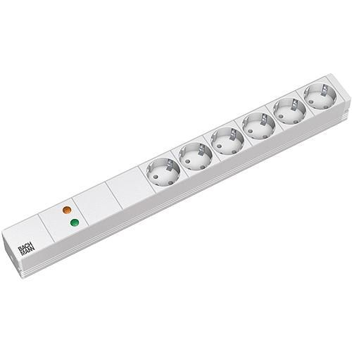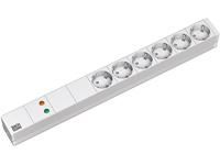 überspannungsschutz, Netzfilter, Lichtgrau RAL7035, 48,3 cm ( 19 Zoll ), 1HE, 6xSchutzkontakt(Dosen,CEE7) -> Schutzkontakt(Stecker,CEE7),
