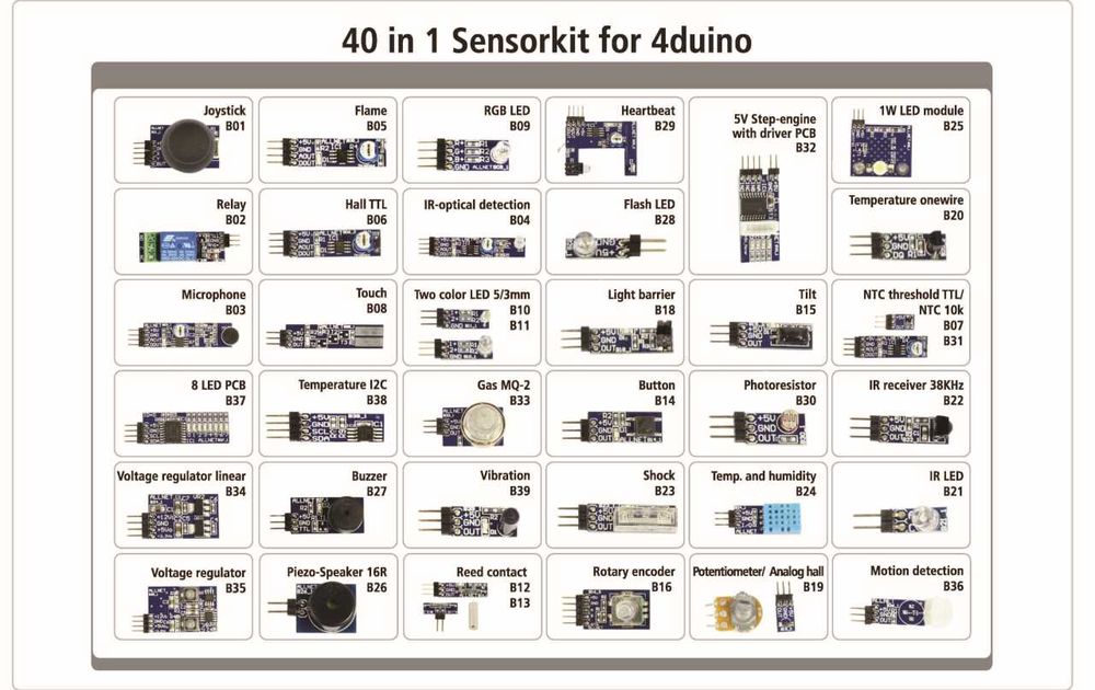 4duino Sensor-Kit für Arduino™ bestehend aus 40 Sensoren und Modulen