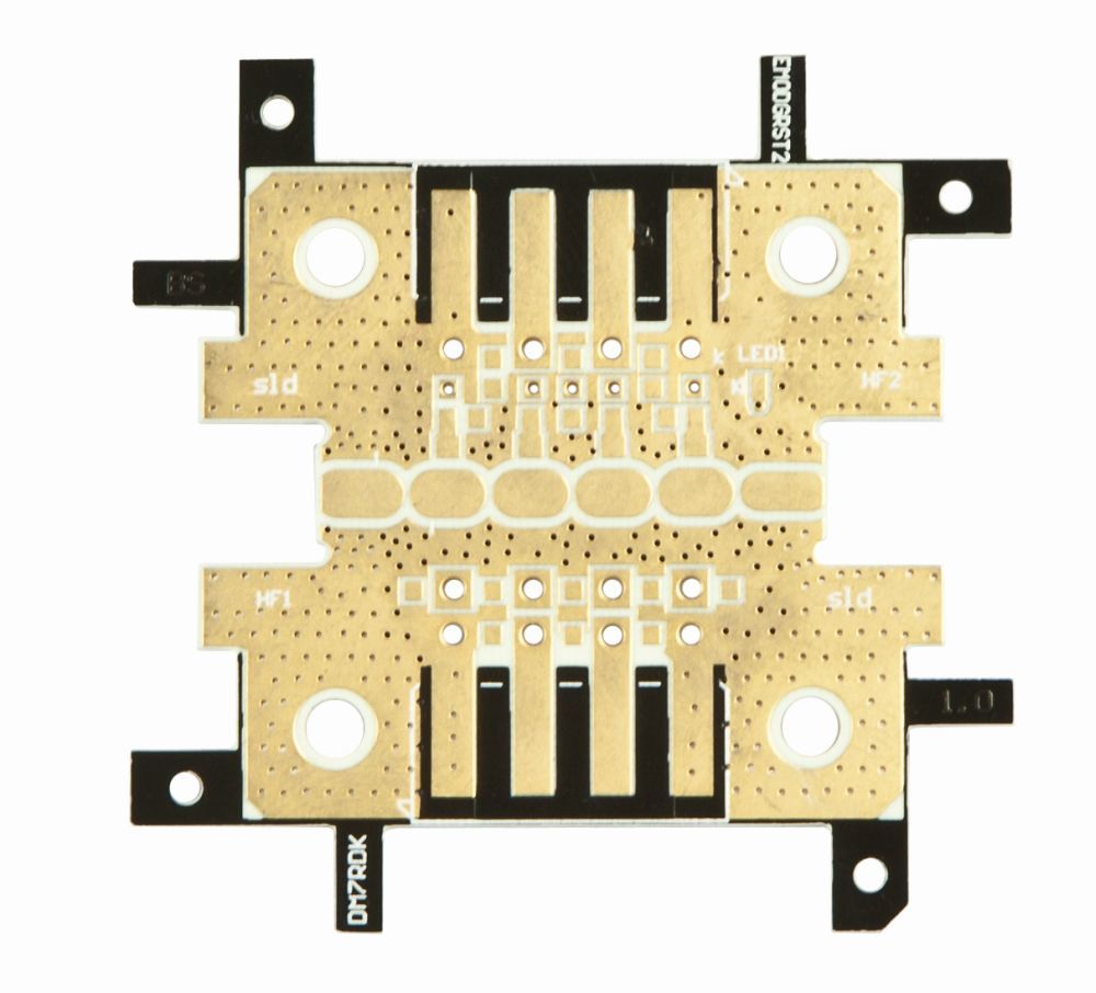 Platinenmaterial RO4350, 1.55mm stark. Microstrip 50 möglich. Überbrückungen durch SMD 0805
