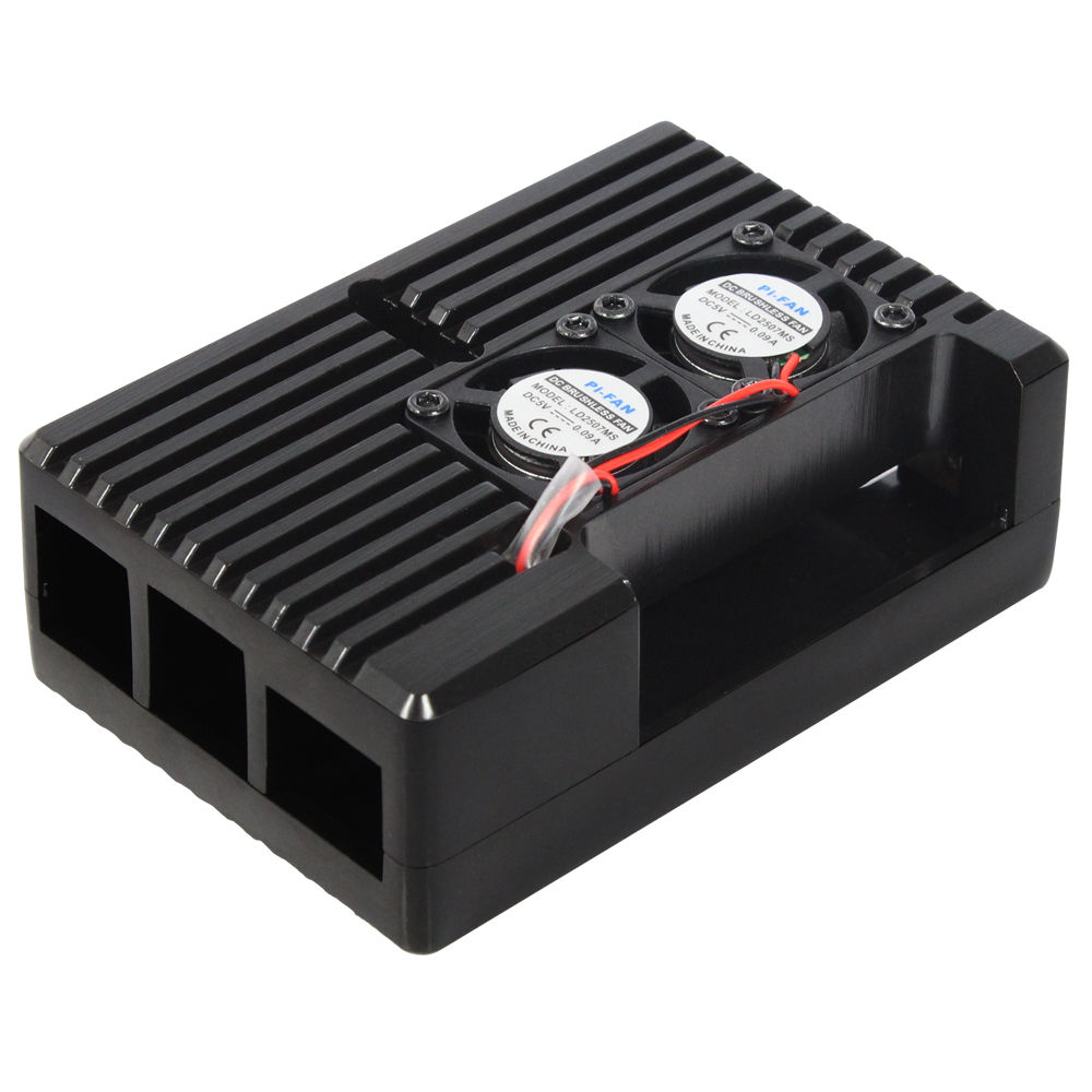 Plattform: Raspberry Pi® 4 • Geeignet für: Raspberry Pi® 4 Model B • Farbe: schwarz • Netzteil: ohne, extern • Kühlung: aktiv 2x Lüfter