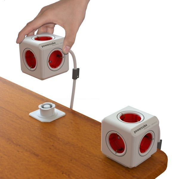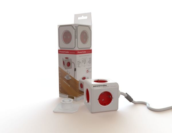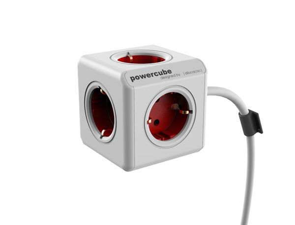 Allocacoc Powercube, Extended, 5xDosen(CEE7)->Stecker(CEE7), 1, 5m, weiss/rot