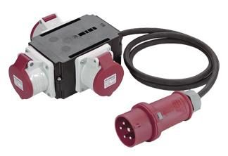 CEE-Adapter Farbe: Schwarz Zuleitung: 1,5m H07RN-F 5G1,5mm² mit CEE-Stecker 16A 400V 3xCEE Steckdosen 16A 400V kompakte Bauform, Polyamid