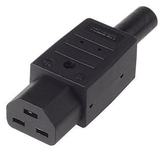 Kaltgerätedose 16 A, 250 V, 70°C schwarz, Thermoplast, C19, mit Knickschutztülle zur Leitungsmontage