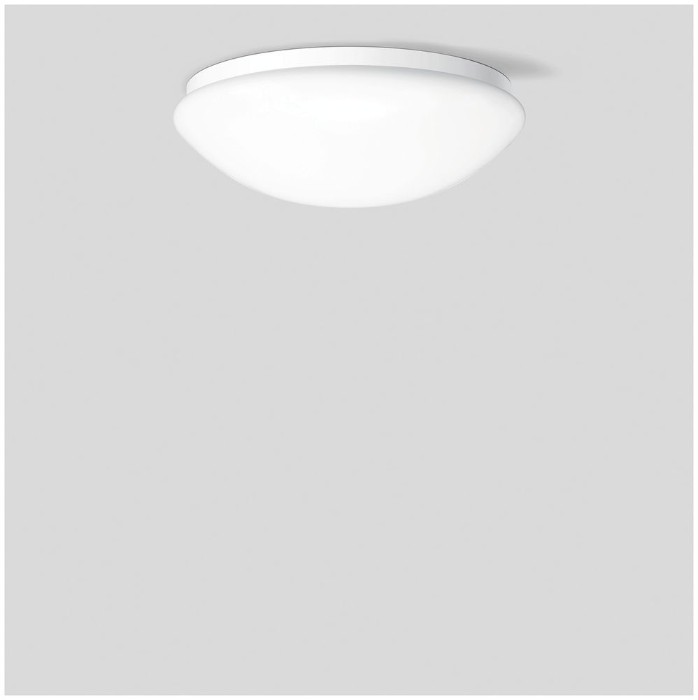 BEGA PRIMA Decken- und Wandleuchte 12138K27 für den Innenbereich. LED, 19,6 W Leuchten-Anschlussleistung, Leuchten-Lichtstrom 1588 lm, Farbtemperatur 2700 K. Farbwiedergabeindex (CRI) > 90. Mit austauschbarem BEGA LED-Modul mit Übertemperaturschutz und einer Lebenserwartung von mindestens 50.000 Betriebsstunden. 20-jährige Nachliefergarantie auf das LED-Modul und die Verschleißteile. Mit LED-Netzteil 220-240 V, 0/50-60 Hz. Leuchtenarmatur aus Metall. Oberfläche Farbe weiß. Mundgeblasenes seidenmattes Opalglas mit Bajonettverschluss. Zwei Leitungseinführungen zur Durchverdrahtung der Netzanschlussleitung bis Ø 10,5 mm. Leuchtendurchmesser 350 mm, Höhe 100 mm.