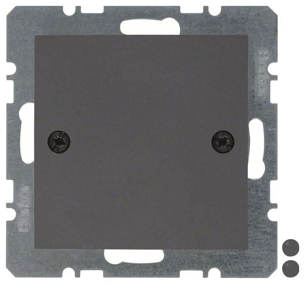 Blindverschluss mit Zentralstück und Schraubbefestigung B.3/B.7 anthrazit, matt. Blindverschluss mit Zentralstück u. Schraubbefestigung auf Tragplatte mit großem Ausschnitt. Für individuelle Ausschnitte und Bohrungen bei Installation von Sonderlösungen. Unterputz-Installation, Flächen-/Designprogramm. Material: Kunststoff, Duroplast, halogenfrei.