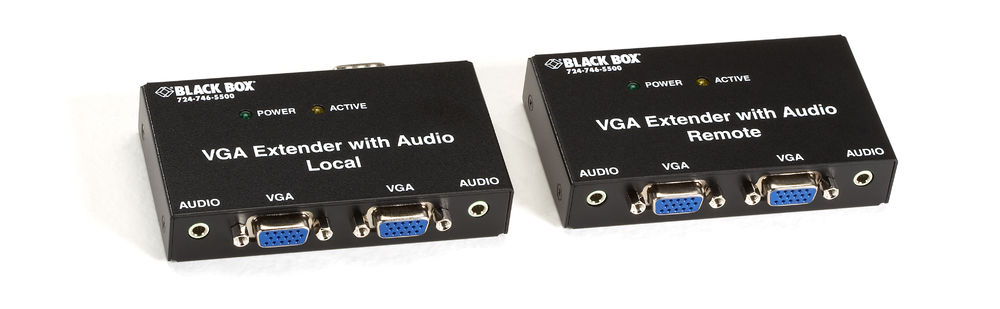 Die BLACK BOX VGA Extender ermöglichen die Übertragung von VGA-Signalen oder VGA- und Audiosignalen über Standard-Twisted-Pair-Kabel (CAT5, CAT5e oder CAT6) bis zu einer Reichweite von 152,4 m. Diese Extender eignen sich ideal für den Einsatz in Videoverteilungs- oder Digital-Signage-Anwendungen und sind perfekt für den Einsatz in Schulen, Krankenhäusern, Einzelhandelsgeschäften, Flughäfen, Busbahnhöfen und vielen anderen Umgebungen.Der Extender unterstützt sowohl lokale als auch entfernte VGA-Monitore. Jedes Kit besteht aus einer lokalen und einer Remote-Einheit sowie einem VGA-Kabel zum Anschluss des HD15-Eingangssteckers der lokalen Einheit an Ihre VGA-Quelle.