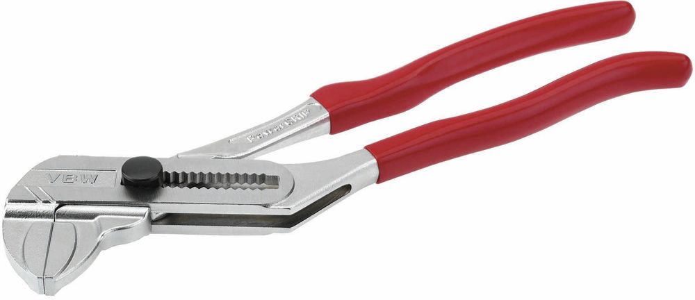 Zangenschlüssel Powergrip, parallel greifende Zange mit praktischer Druckkopfverstellung. Zur Bearbeitung von parallelen und flachen Werkstücken wie Muttern, Schrauben, Kabelverschraubungen und dünnen Blechen. Hohe Übersetzung zur spürbaren Unterstützung der Handkraft. Ergonomisch geformt und extrem belastbar. Spielfreies Gelenk mit stufenloser, leichtgängiger Feineinstellung. Verchromt mit tauchisolierten Griffen. Ausführung: 180 mm, Spannweite: 36 mm, Gewicht: 275g