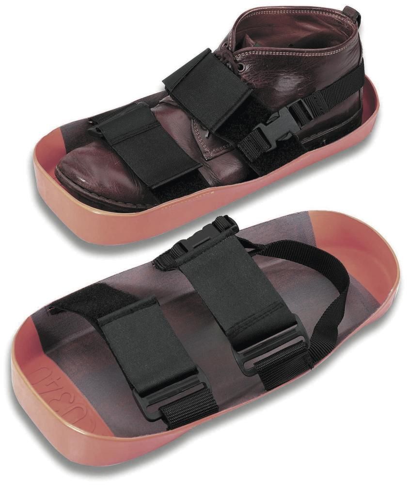 Isolierende Überschuhe, für elektrotechnische Arbeiten unter Spannung in Innenräumen auf festem Untergrund (z. B. Zählerwechsel unter Spannung, Sperrkassierertätigkeiten, Arbeiten an Innenraum-Kabelverteilern). Die Galoschen dienen als gleichwertiger Ersatz für eine Standort-Isolierung bis zu 1000 V AC /1500 V DC, schnelle Befestigung an normalem Schuhwerk mittels 2 Klettverschlüssen im Vorderfuss- sowie mit einem Steckschluss im Fersenbereich, baumustergeprüft in Anlehnung an DIN EN 50 321. Die Nutzung unter feuchten Bedingung, auf Leitern und bei Arbeiten in Außenbereichen, insb. im Kabelgraben, ist ebenso wenig zulässig, wie bei Arbeiten, bei denen ein Erdschluss mit anderen Körperteilen nicht ausgeschlossen ist (z.B. kniende Tätigkeiten). Sohlenlänge 300-320 mm, Schuhgröße ca. 43-46, Innenlänge 320 mm. 1 Paar