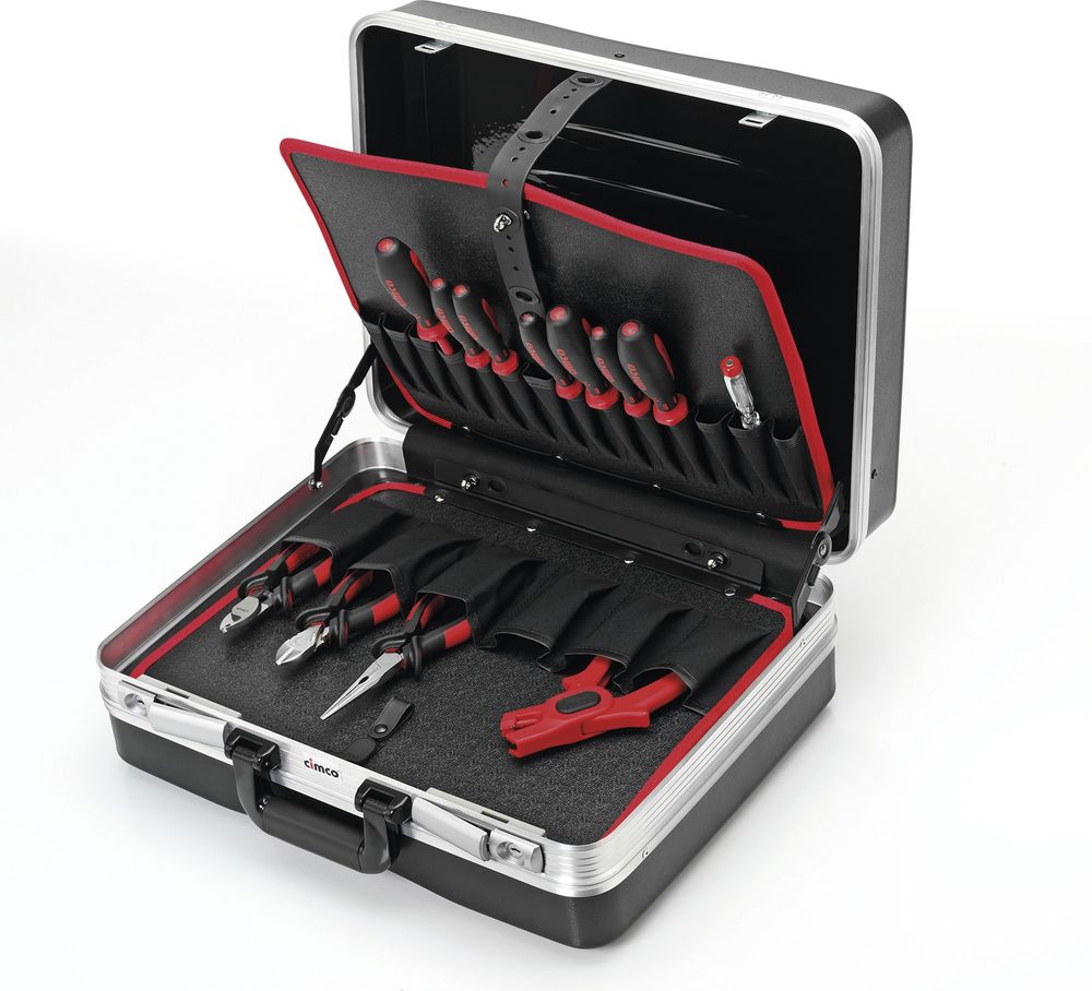 Ein preiswerter, dennoch absolut professioneller Hartschalen-Werkzeugkoffer-Metro. Ausstattungsmerkmale: Kofferschalen aus ABS-Material, umlaufender Aluminiumrahmen mit 2 integrierten abschließbaren Kippschlössern, Belastbarkeitbis 15 kg, 2 Werkzeugtafeln mit insgesamt 26 Werkzeug-Einsteckfächern. Dokumenten-Klemmfach 400 mm breit, frei unterteilbare Bodenschale inkl. Trennstegen, Deckelhalter und Scharniere aus Metall, Kunststoffbodengleiter. Koffer bestückt mit 13 Werkzeugen: 1000 V Telefonzange mit geraden Backen 200 mm geprüft nach DIN ISO 57456 (-Artikelnr. 17 00731), 1000 V Seitenschneider 160 mm (-Artikelnr. 10 0216), Jokari-Abisolierzange Super 4 (-Artikelnr. 10 0760), Phasenprüfer 120-250 V AC, 3,0/65 mm (-Artikelnr. 11 1280), 1000 V Schlitz-Schraubendreher 185 mm geprüft nach DIN EN 60900, 3,0x0,5 mm (-Artikelnr. 11 7702), 1000 V Schlitz-Schraubendreher 185 mm, geprüft nach DIN EN 60900, 4,0x0,8 mm (-Artikelnr. 11 7704), 1000 V Schlitz-Schraubendreher 220 mm geprüft nach DIN EN 60900, 5,5x1,0 mm (-Artikelnr. 11 7705), 1000 V Kreuzschlitz-Schraubendreher PH 1,80 mm geprüft nach DIN 7438 (-Artikelnr. 11 7731), 1000 V Kreuzschlitz-Schraubendreher PH2, 100 mm, DIN 7438, (-Artikelnr. 11 7732), 1000 V Kreuzschlitz-Schraubendreher PZ1, 80 mm (-Artikelnr. 11 7741), 1000 V Kreuzschlitz-Schraubendreher PZ 2, 100 mm (-Artikelnr. 11 7742) Kabelschere DUOCUT, 160 mm, mit zweistufigem Schneidenbereich (-Artikelnr. 12 0108), JOKARI Kabelmesser mit Hakenklinge, mit einem Ø von 8 - 28 mm (-Artikelnr. 12 1010). Außenmaße B/T/H: 478/398/202 mm, Innenmaß: L/B/H1/H2/H#: 464/355/115/70/185 mm.