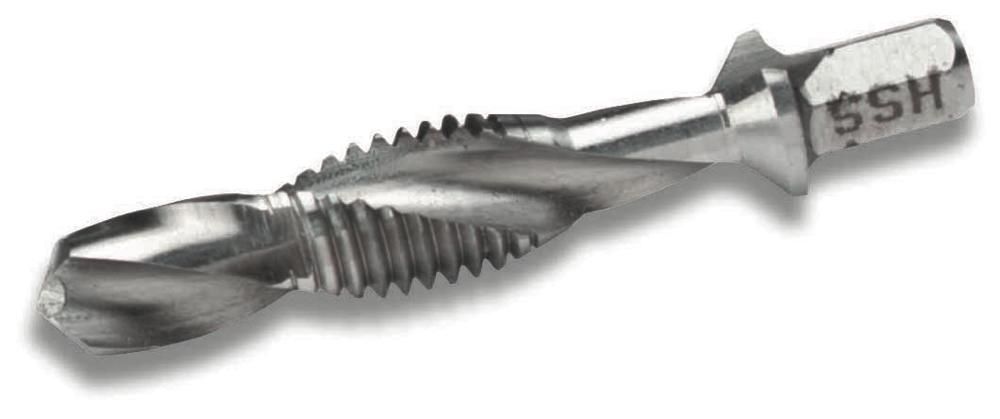 Kombi-Gewindebohrer, Bohren - Gewindeschneiden - Entgraten in einem Arbeitsgang, aus HSS, geeignet für Stahl und NE - Metalle, für Materialstärke bis 1 x Durchmesser, M5