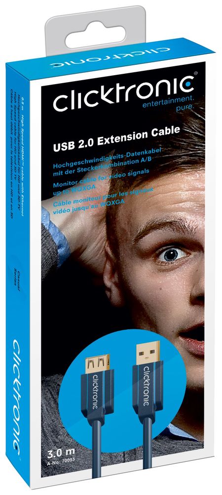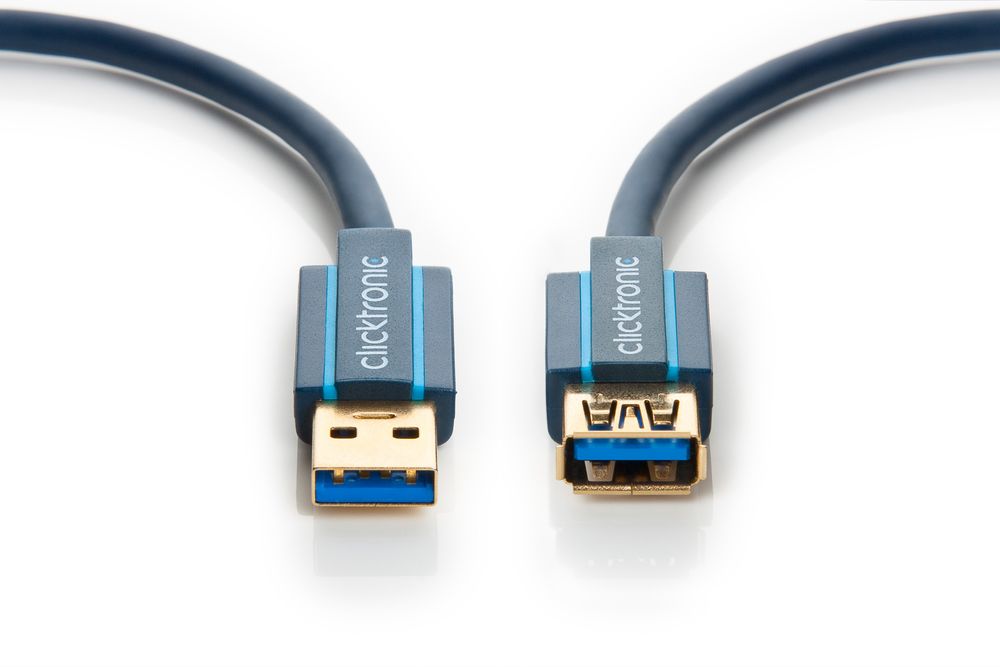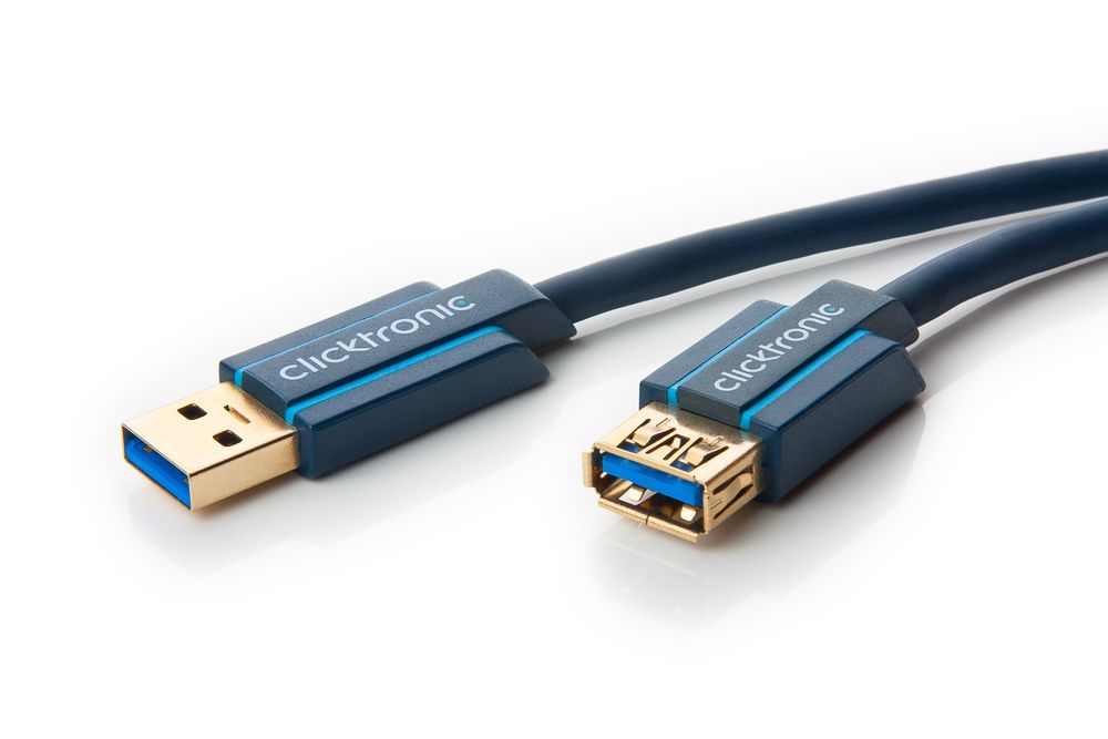 Clicktronic 70119 USB 3.0 Verlängerung - Hochgeschwindigkeits-Verlängerung für USB Stecker vom Typ A