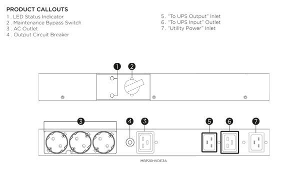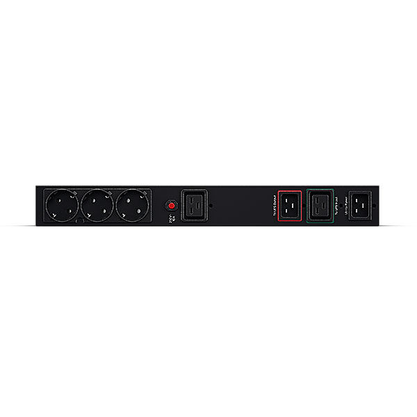 CyberPower zbh. By-Pass, Manuell, IEC Outlet, PDU, 1HE, Eingang 16A 1xC19+2xC20, Ausgang 16A 1x C19 + 3xSchutzkontakt Steckdosen