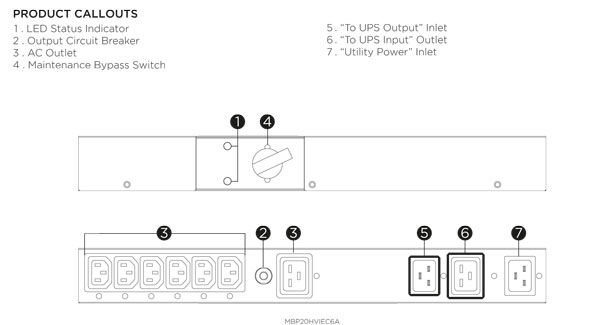 CyberPower zbh. By-Pass, Manuell, IEC Outlet, PDU, 1HE, Eingang 16A 1xC19+2xC20, Ausgang 16A 1x C19+ 10A 6xC13