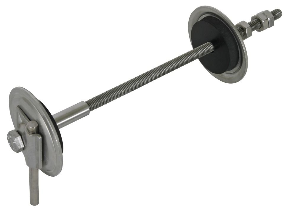 Erder- und Wanddurchführung mit MV-Klemme aus NIRO (V4A), zur druckwasserdichten Durchführung der Erd- / Potentialausgleichsleiter bei Mauern und Wänden mit Gewindestange M10 aus NIRO. Ausführung zum nachträglichen Einbau mit Bohrung (D14 mm) oder ggf. durch die Fertigspreize der Schalung. Mit Druckwasserprüfung bis 1 bar (bis Tiefe von 10 m gegenüber stehendem Wasser).