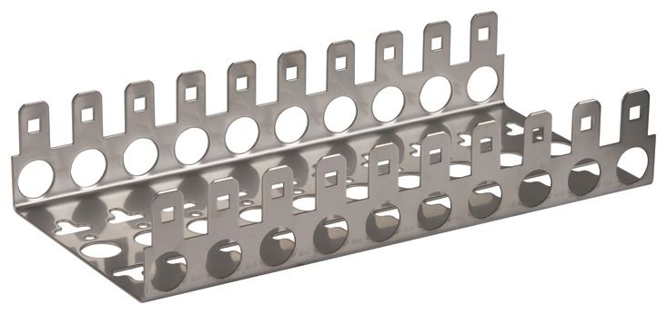 Montagebügel zur Aufnahme von 10 LSA-Leisten Baureihe 2/10. Gesamtbreite: 104,5 mm