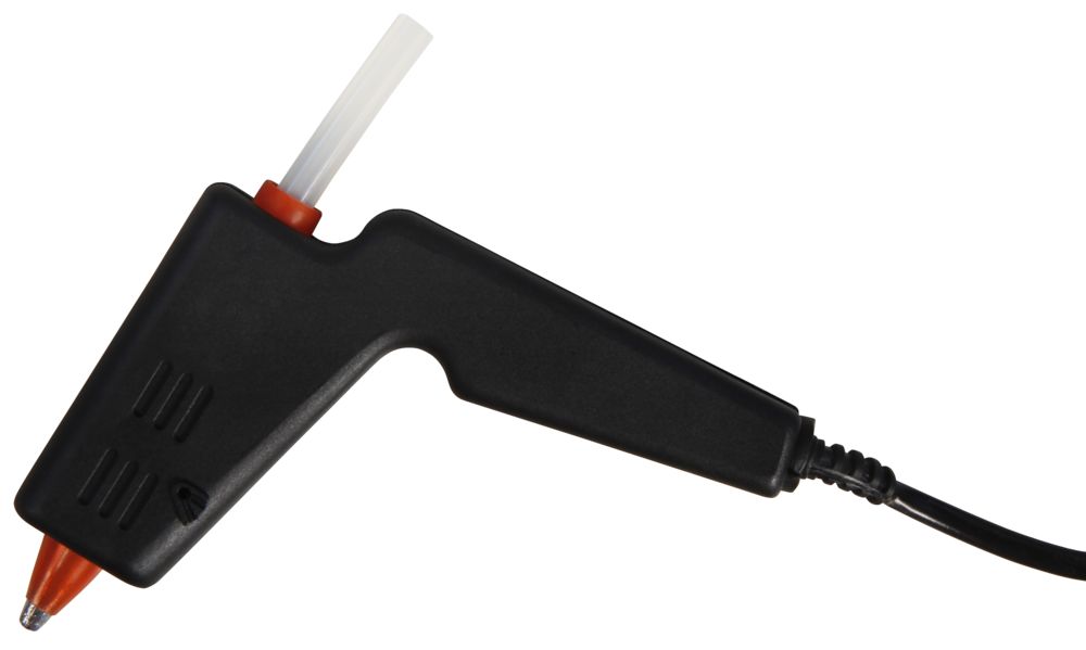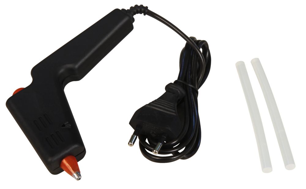 - bei einer Leistung von 10 Watt erwärmt sich die Spitze auf 170 °C und lässt 4,5 g Klebstoff pro Min. zerfließen