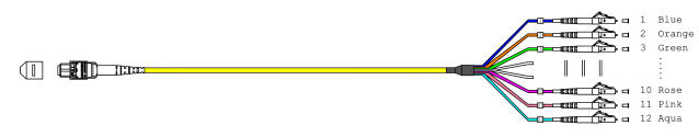 Passendes Zubehör für LWL-MTP®-Female-LC Patchkabel OS2 LowLoss, 12 Faser(Fanout,Pin1-12)-> 6xLC duplex, 1m, 9/125u,