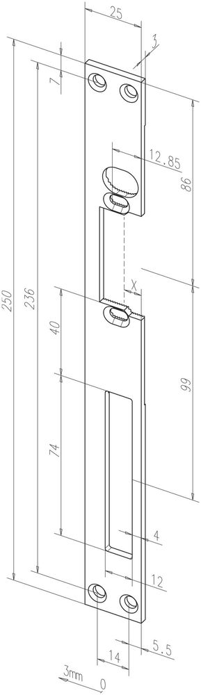 Flachschließblech Nr. 050, Mit Fix-Rillen, Für wassergeschützte Türöffner mit mechanischer Entriegelung