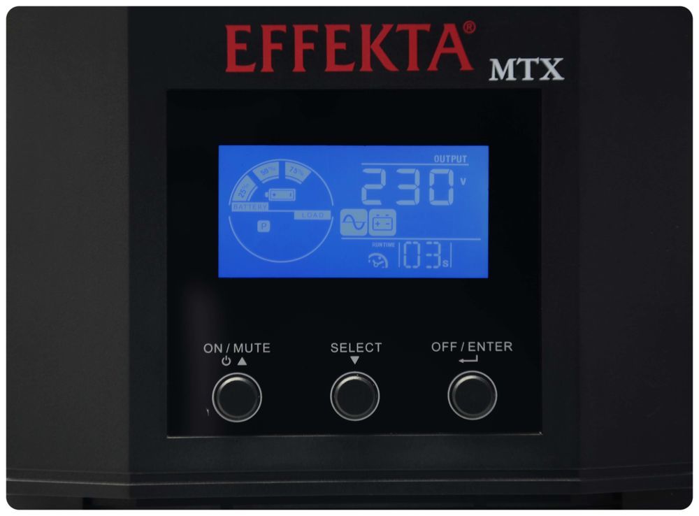 Effekta MTX-XL Lineinteraktive USV, 3000VA, 17min bei cos phi 0,7 , MTX3000-17, USB+RS232, Schwarz, Sinus-Ausgang,