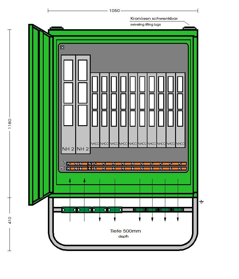 10 Abgänge über Lastschaltleisten Gr. NH00