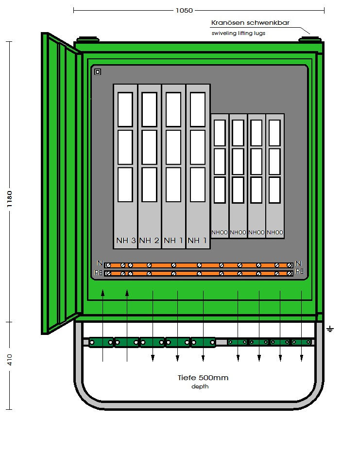 4 Abgänge über Lastschaltleisten Gr. NH00