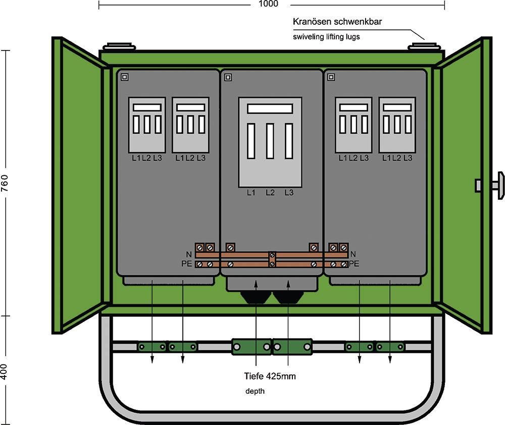 Elektra Tailfingen 189700 ET GV 250-S1 Gruppenverteilerschrank 173kVA Anschl.sicherung NH 1 Sich.