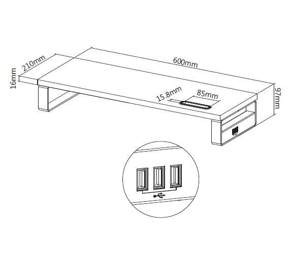 Equip Monitortischerhöhung 3xUSB2.0/Handyhalter 15Kg schwarz retail