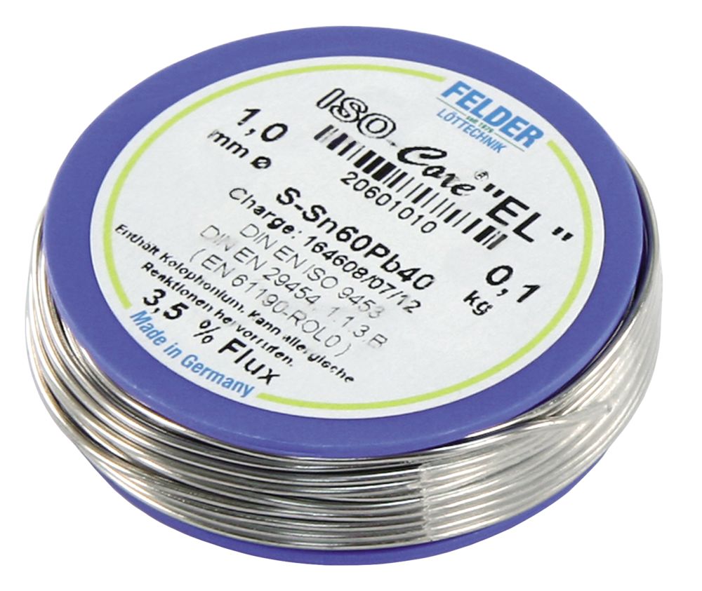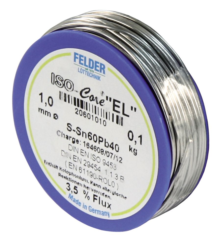Felder Löttechnik ETT-1540252 Lötzinn auf Rolle FELDER ISO-Core ''EL'', 1,0mm, 100g, bleihaltig (60%Sn 40%Pb)