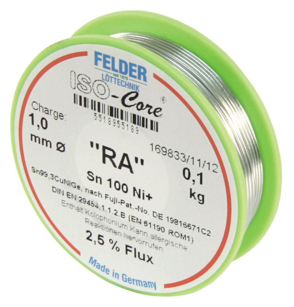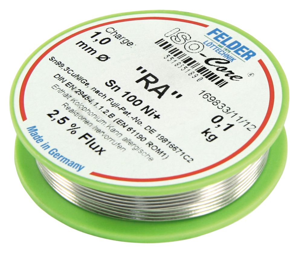 Anfrage: Felder Löttechnik Lötzinn Rolle FELDER ISO Core ''RA'' 1 0mm 100g bleifrei (Sn100%Ni ) - ETT-1540256