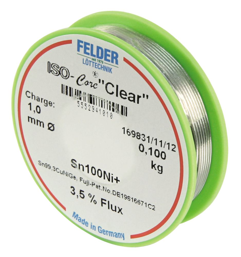 Felder Löttechnik ETT-1540264 Lötzinn auf Rolle FELDER, ISO-Core ''Clear'', 1,0mm, 100g, bleifrei (Sn100%Ni+)
