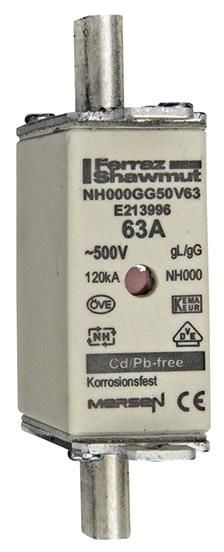 Ferraz Shawmut E213996 Mersen NH000GG50V63 Sicherungseinsatz NH gG Größe 000 AC500V 63A sfü Kombikennmelder
