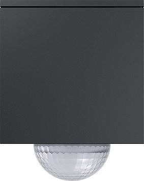 Bewegungsmelder Cube 240 Anthrazit Merkmale: Automatisches Schalten von Beleuchtung abhängig von Wärmebewegung und Umgebungshelligkeit. Automatische temperaturkompensierte Sensorempfindlichkeit. Dauerlicht (max. 2 h) kann mit einem optionalen Schalter Taster aktiviert werden. Testbetrieb zur Auswertung des Erfassungsbereichs. Individuelle Anpassung des Erfassungsbereichs über beiliegende, zuschneidbare Abdeckblende. Abschaltverzögerung einstellbar: 5 s bis 15 min oder Kurzzeitbetrieb 1 s. Aktuellen Dämmerungswert mit Teach-in-Funktion speichern. Blendschutz, helligkeitsunabhängige Sensorauswertung für 60 s bei Blendung durch Fremdlicht. Kurzzeitbetrieb, Ausgang wird für ca. 1 s eingeschaltet. Fernbedienung optional. Boden- und Rückfeldüberwachung. Hinweise : Für die Decken- und Wandmontage im Innen- und Außenbereich geeignet. Optional: Fernbedienbar über IR-Fernbedienung PIR 3. Bei 'Energiesparlampen' auf hohe Einschaltspitzenströme achten. Eignung der Lampen vor dem Einsatz prüfen!