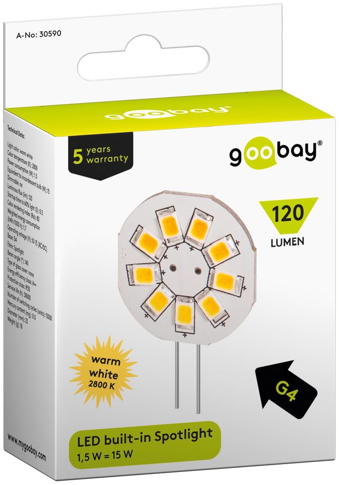 Der Artikel Goobay 30590 LED Einbaustrahler, 1,5 W - Sockel G4, ersetzt 15 W ist derzeit auf Lager