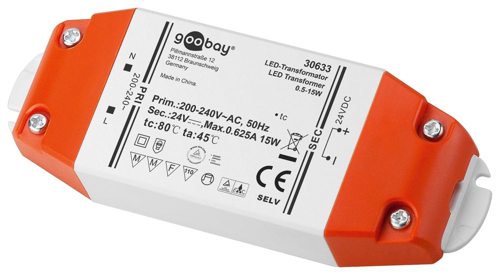 Der Artikel Goobay 30633 LED-Trafo 15W/24V - 24 Volt DC für LEDs bis 15 Watt Gesamtlast ist derzeit auf Lager