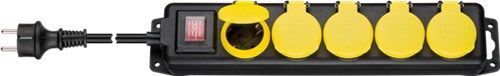 Goobay Steckdosenleiste 5-fach, spritzwassergeschützt, Schwarz-Gelb, 3 m, Banderole - für den Außenbereich geeignet