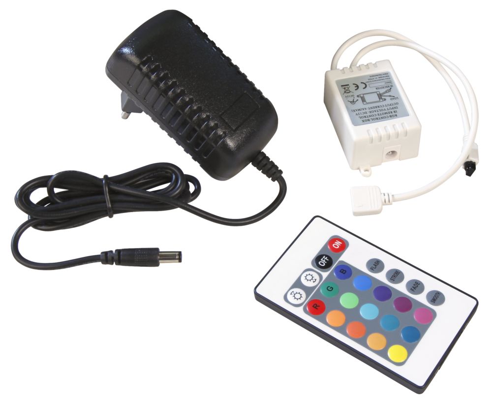 - Lieferumfang: LED-Leiste, Controller, IR-Fernbedienung und Netzteil