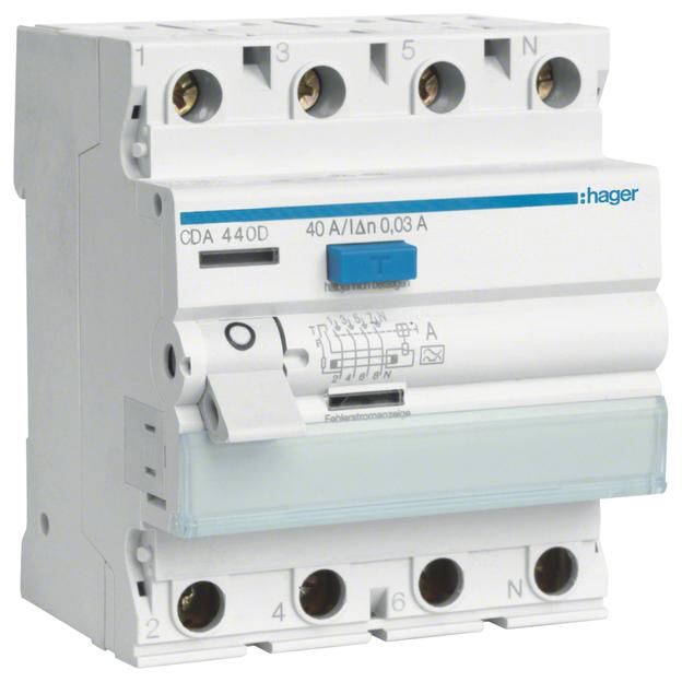 Hager CDA440D Fi-Schalter 4-pol 6kA 40A 30mA Typ A