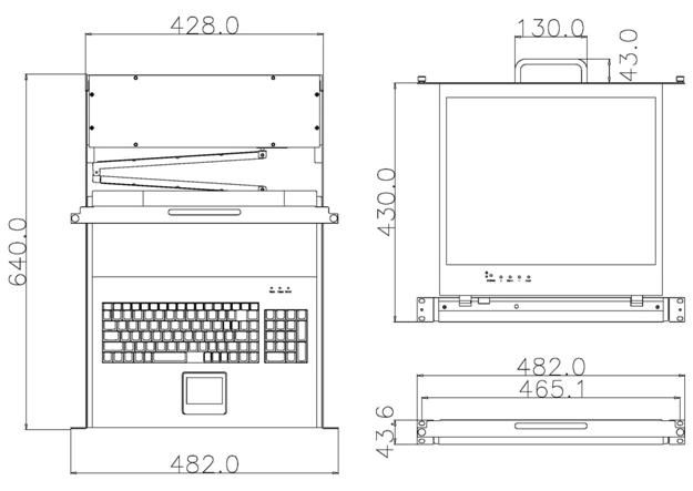 - 1HE 19“ LCD Konsole mit einer Tiefe von nur 640mm