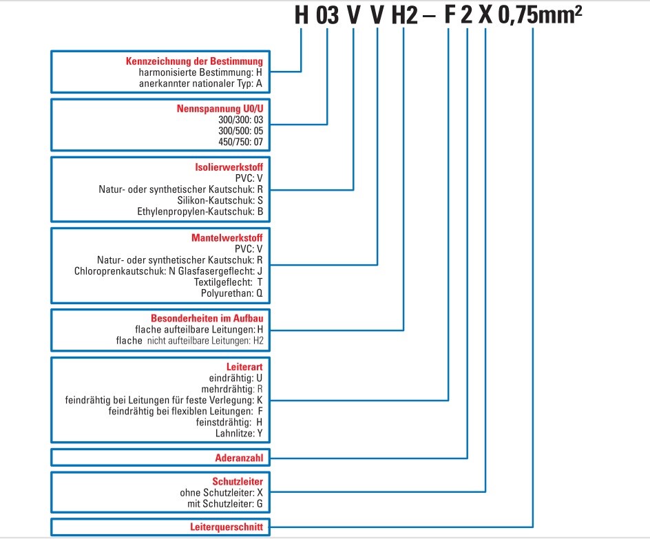 Typenkurzzeichen von Kabeln