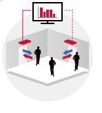 Durch die intelligente Vernetzung mehrerer Sensoren können großflächige Areale analysiert werden. Laufwege einzelner Personen können somit über mehrere Sensoren hinweg zuverlässig nachvollzogen werden. Besonders große Eingangsbereiche können so flächendeckend erfasst werden, was eine lückenlose Personenzählung ermöglicht.