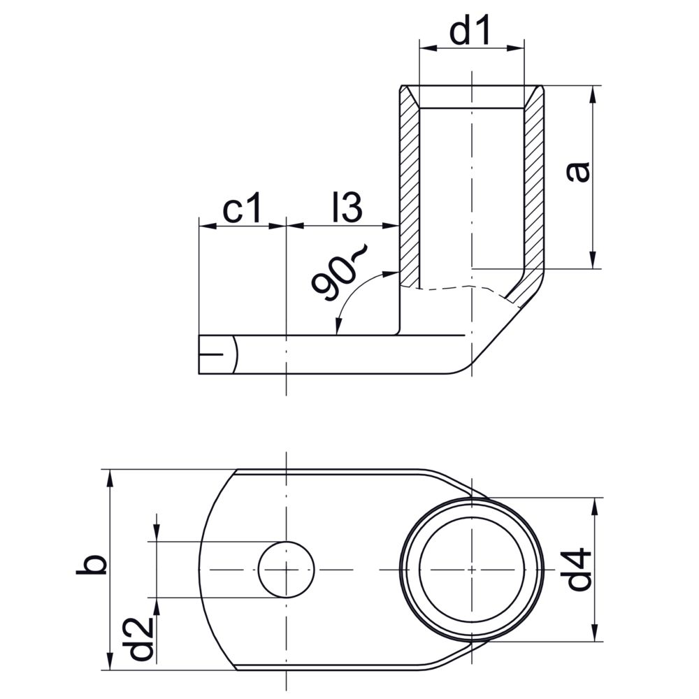 1x KLAUKE 41R5 - Rohrkabelschuh 90° 6qmm M5 Cu galv verz