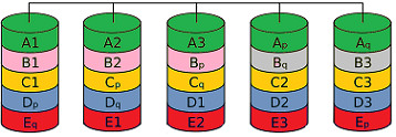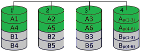 Striping: "Streifen" - Einzelne Datenstreifen werden auf unterschiedliche Platten verteilt.