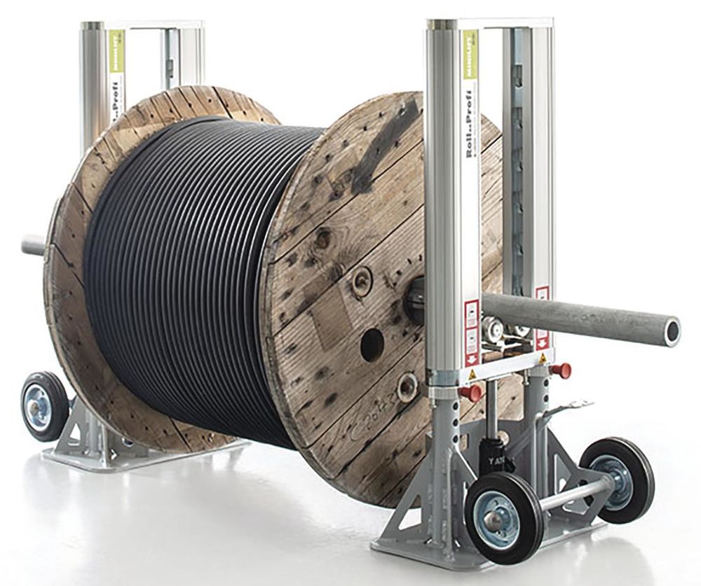 Der miniLift rollt schwere und große Kabeltrommeln bis zu einem Gewicht von 4t problemlos und einfach ab.