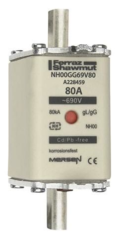 Lindner A228459 Mersen NH00GG69V80 Sicherungseinsatz NH gG Größe 00 AC690V 80A sfü Kombikennmelder