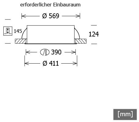 Ausschnittsmaß: 390 mm