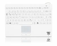 Die SlimCool+ LP ist eine medizinische Silikontastatur mit integriertem Touchpad die nach IP68 Standard geschützt ist. Die komplett mit Silikon ummantelte Tastatur von Man&Machine ist vollkommen resistent gegen Verschmutzungen aller Art. Das Touchpad wurde mittig integriert, um eine leichte Bedienung sowohl für Links- als auch für Rechtshänder zu ermöglichen. Die SlimCool+ LP Silikontastatur für den Einsatz in der Medizin findet Ihren Einsatz an Orten, an denen Feuchtigkeit, Reinigung und Langlebigkeit eine besondere Rolle spielen. Eine weitere, vorteilhafte Eigenschaft dieser medizinischen Silikontastatur ist ihre geringe Lärmemission. Lästige Tastaturgeräusche werden durch die besondere Technologie der medizinischen Silikontastatur SlimCool+ LP weitestgehend vermieden, sodass diese Tastatur auch in lärmsensitiven Bereichen angewendet werden kann. Trotz der guten Dämpfung verfügten die einzelnen Tasten über einen deutlich spürbaren Druckpunkt für die Rückmeldung des Tastendrucks. Die medizinische Silikontastatur SlimCool+ LP ist kompatibel zu allen Standard – Keyboards und benötigt für den Betrieb keine speziellen Treiber.