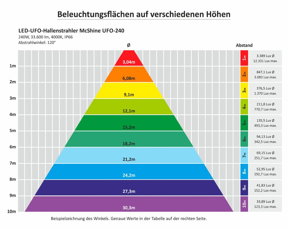 Darüber hinaus können Sie mit unseren attraktiven Staffelpreisen bei jedem Einkauf sparen. Schon ab 5 Stück bieten wir LED-UFO-Hallenstrahler McShine ''UFO-609,6 cm ( 240 Zoll ) 240W, 33.600lm, 4000K, IP66, 120° für nur 121,26 EUR pro Stückan. Je mehr Sie bestellen, desto günstiger wird Ihr Einkauf.
