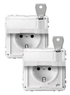 Merten MEG2318-7219 SCHUKO-Steckdose BRS Klappd.+Schriftf. abs.2gl. pw AQUA